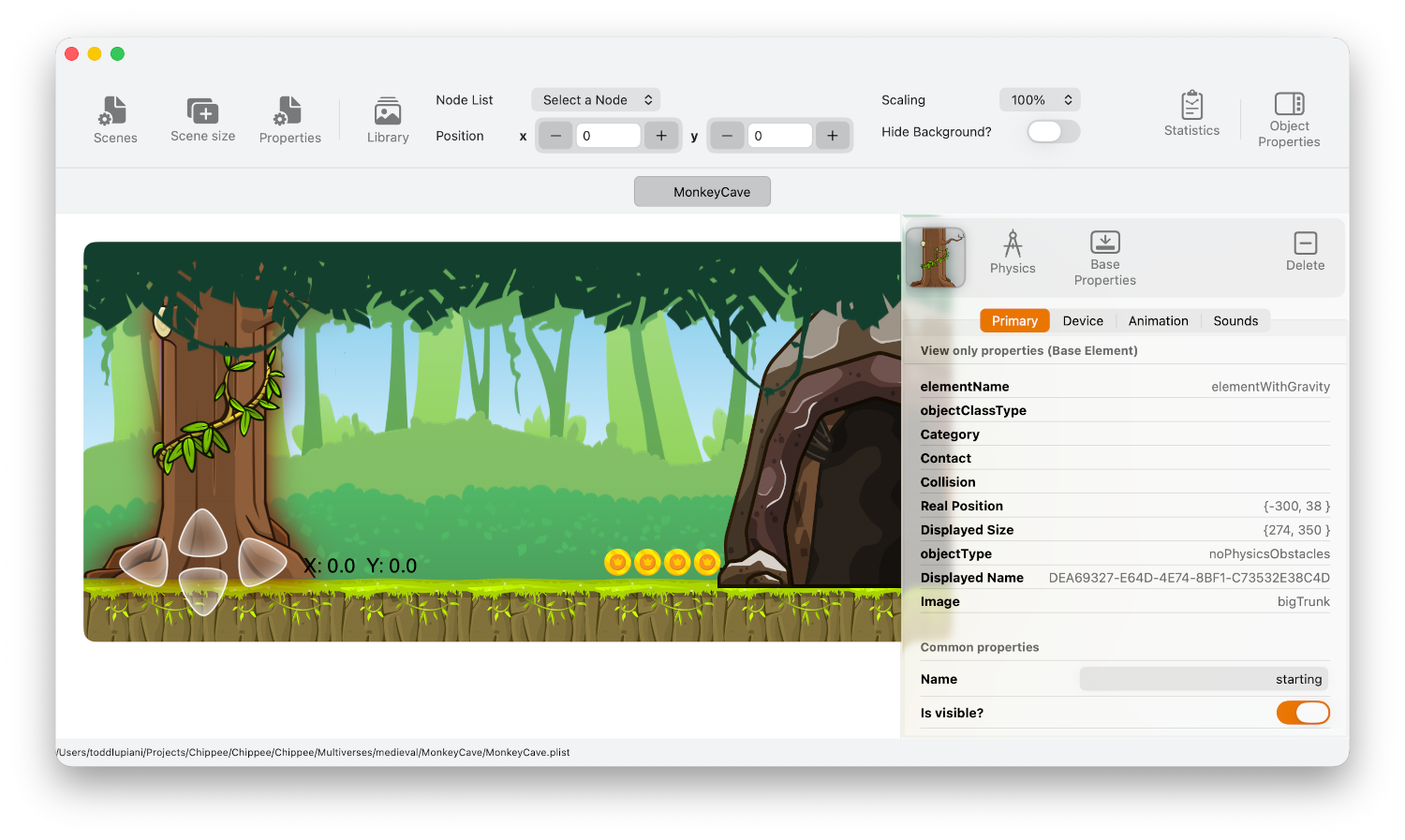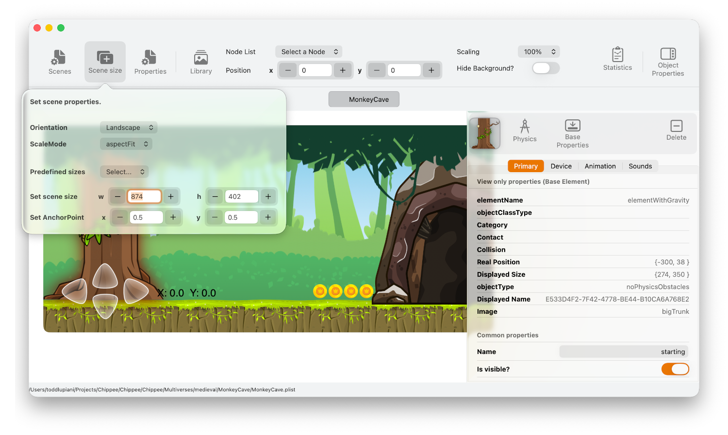 Scene size is important in the Apple ecosystem. You can easily define a custom size that is used across all the different variations within iPhone, iPad, etc. You can also select from the predefined device sizes or decide that each device size will be the default. The choice is yours and provides you with the flexibility from level to level, or game to game.