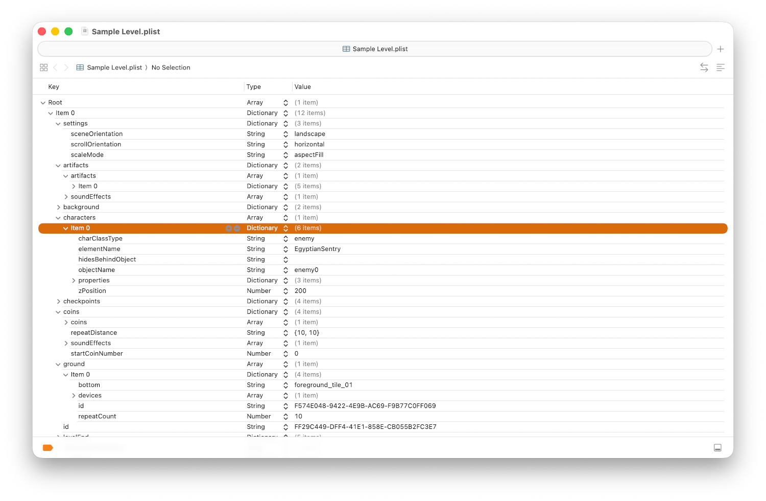 The heart of the Scroller2d system. The data model provides you with the structured data to help accelerate your creativity. This includes background, horizontal ground, enemies, static and dynamic objects that may interfact with your hero, collectibles, and many more to explore.