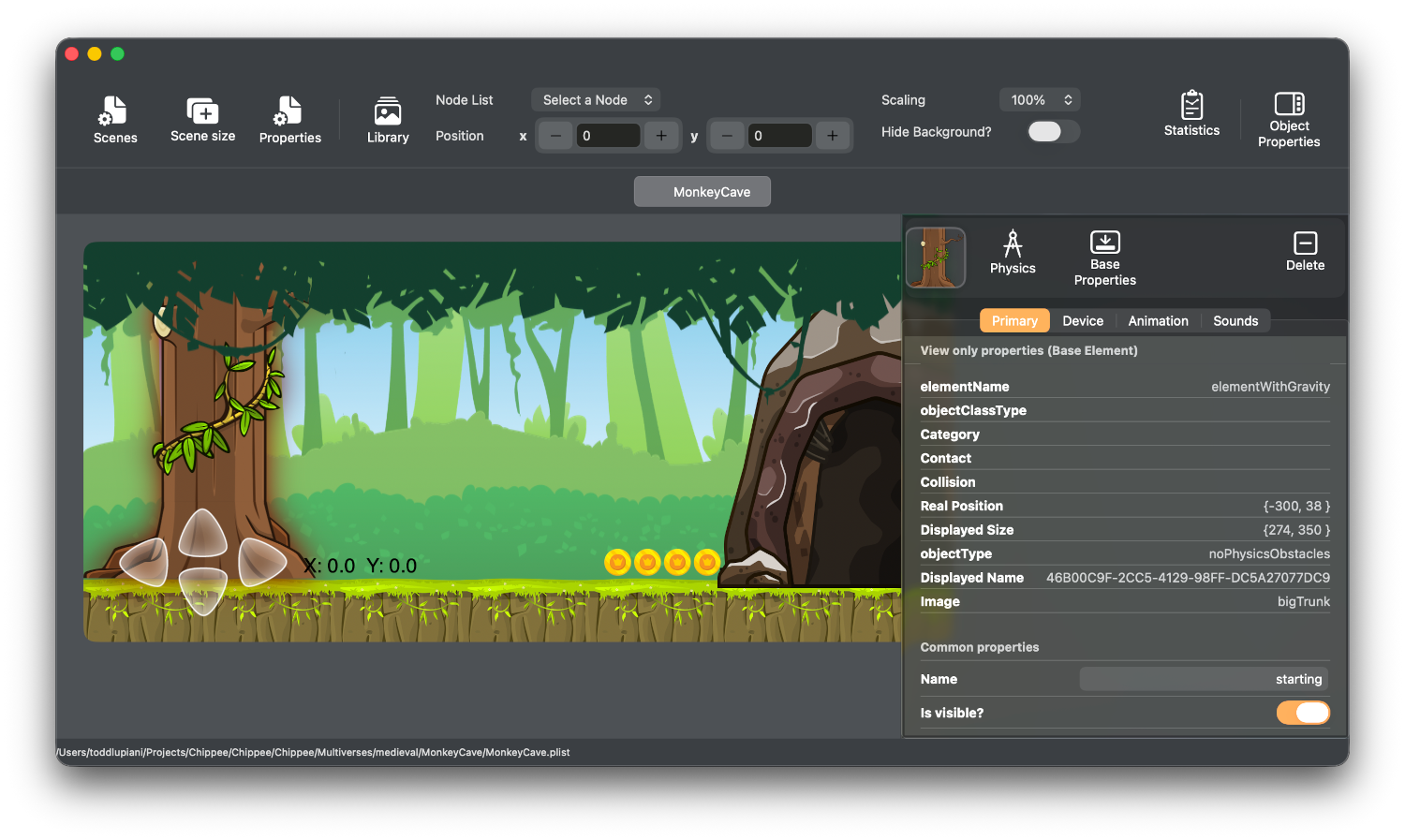 This is the heart of LevelEditor. Within the inspector tabs, you will find the levers and knobs needed to easily edit the properties for each element within your level. Quickly modify any element with properties such as size, sounds, image, position, and many, many more.